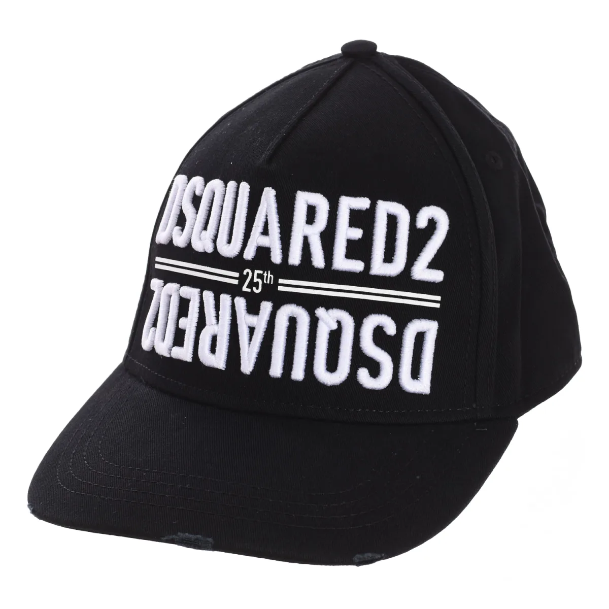 Herenpet van het merk Dsquared2. Borduring aan de voor- en achterkant. Detail van scheuren op de klep. Band met verstelbare sluiting aan de achterkant. Zomen in dezelfde tint. Samenstelling: 100% katoen. Onderhoud: Handwas. Strijken op lage temperatuur. Niet bleken. Niet drogen in de droogtrommel. Niet chemisch reinigen.
