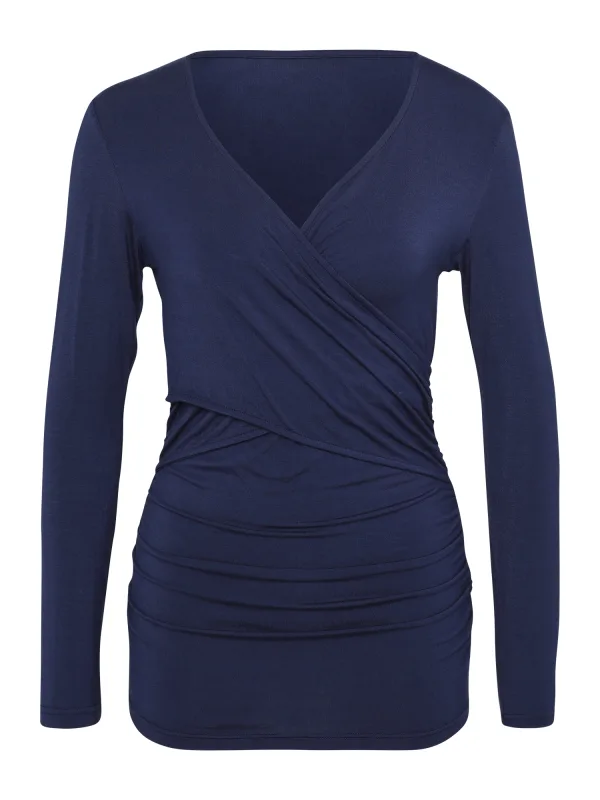 Design: Gevoerde zoom/rand, Diepe snit/decolleté, Wikkel-look; Materiaal: Jersey; Halstype: V-hals; Motief: Effen; Details: Gedrapeerd; Extra's: Op staal naden, Voelt zacht aan; Borstvoedingsfunctie: Met borstvoedingsfunctie; Pasvorm: Slanke pasvorm; Armlengte: Lange mouw; Lengte: Normale lengte