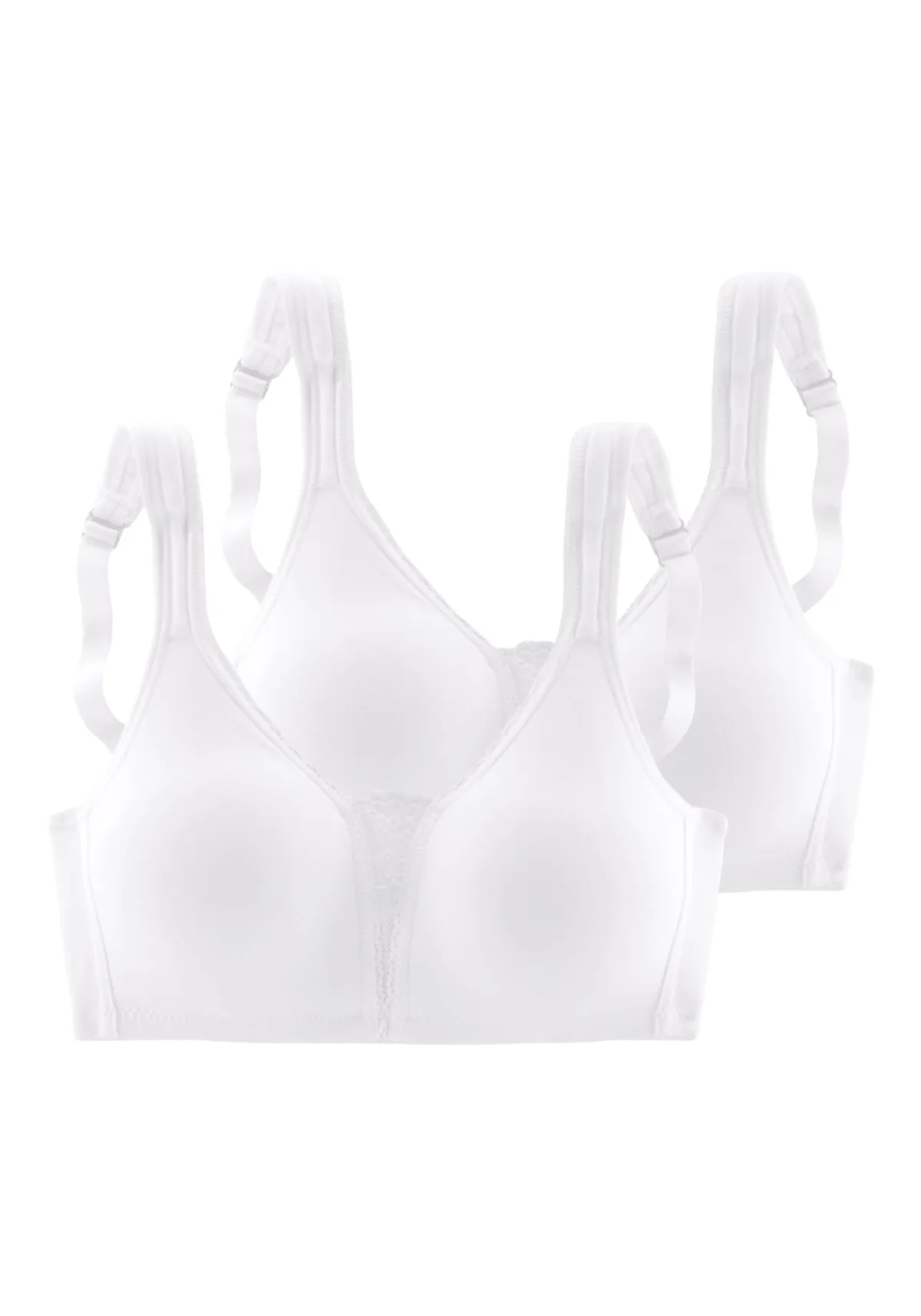 Cup soorten: Soft cup bh; Soort bandjes: Normale bandjes; Bh/bikini type: Minimizer; Beugel: Zonder beugel; Type sluiting: Haakjes; Materiaal: Katoen; Motief: Effen; Details: Kant; Extra's: Huidvriendelijk materiaal; Aantal: 2 Pack