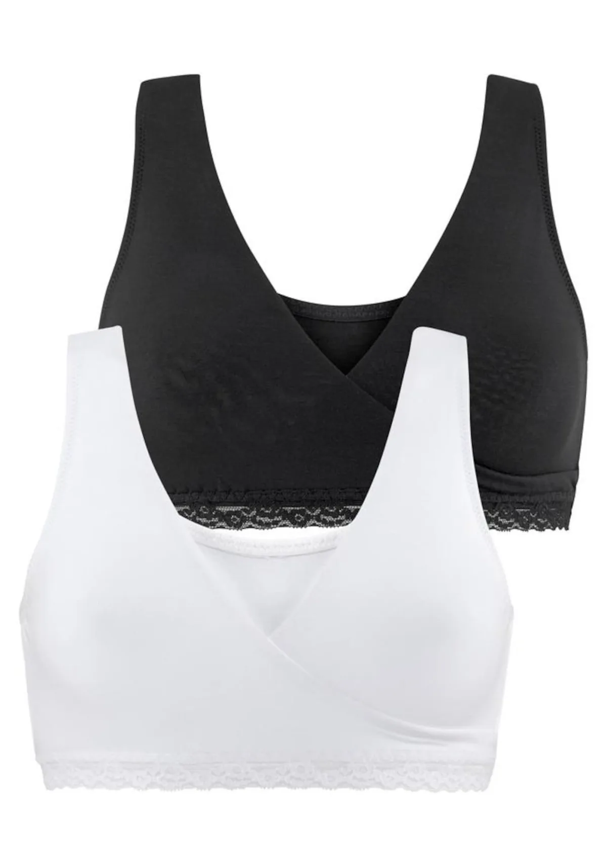 Cup soorten: Full cup bh; Soort bandjes: Normale bandjes; Bh/bikini type: Bustier; Beugel: Zonder beugel; Motief: Effen; Details: Kant; Extra's: Zonder beugel; Borstvoedingsfunctie: Met borstvoedingsfunctie; Aantal: 2 Pack
