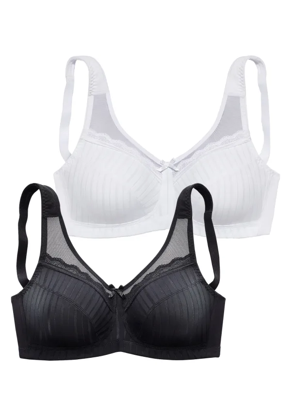 Cup soorten: Soft cup bh; Soort bandjes: Normale bandjes; Bh/bikini type: Bustier; Beugel: Zonder beugel; Motief: Effen; Details: Kant; Extra's: Verstelbare bandjes, Op staal naden; Aantal: 2 Pack