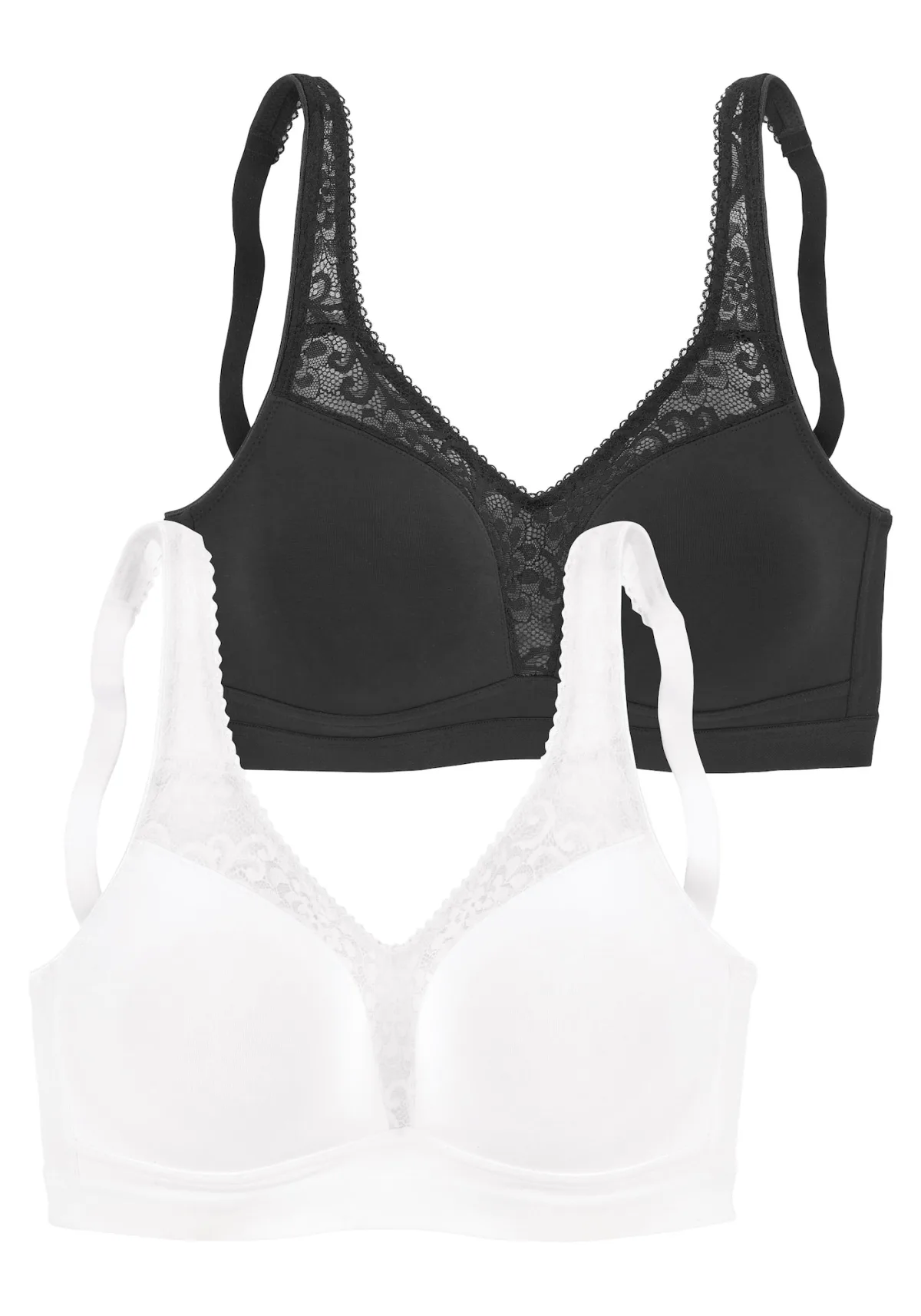 Cup soorten: Full cup bh; Soort bandjes: Normale bandjes; Bh/bikini type: Bustier; Beugel: Zonder beugel; Materiaal: Katoen; Motief: Effen; Details: Kant; Aantal: 2 Pack