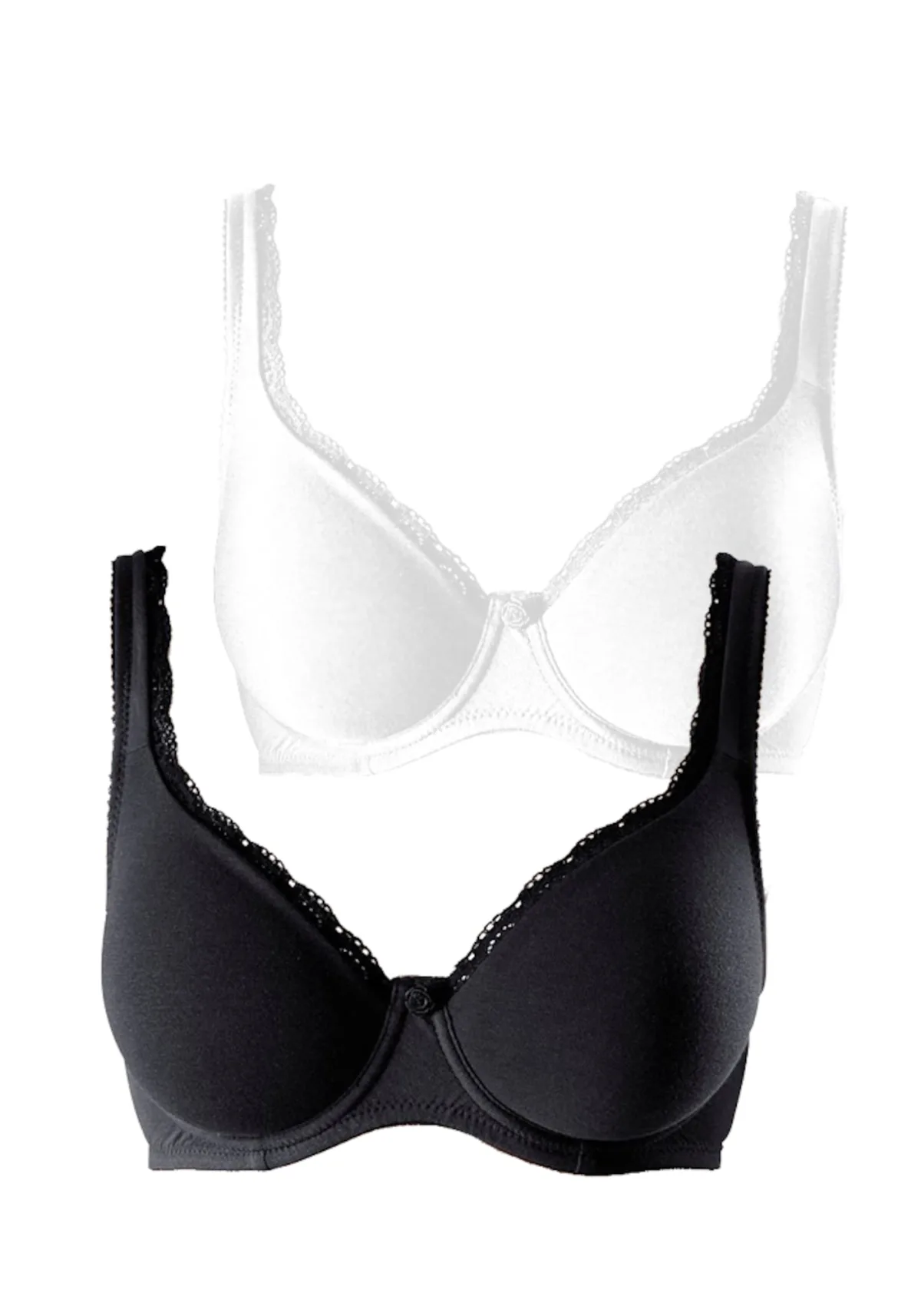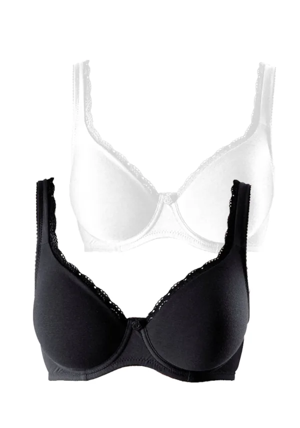 Cup soorten: Full cup bh; Soort bandjes: Normale bandjes; Bh/bikini type: T-shirt; Beugel: Met beugel; Type sluiting: Haakjes; Motief: Effen; Details: Kant; Extra's: Applicaties, Op staal naden; Aantal: 2 Pack; Pasvorm: Regular; Taillehoogte: Mid waist