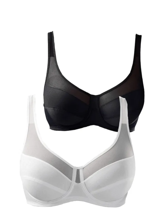 Cup soorten: Soft cup bh; Soort bandjes: Normale bandjes; Bh/bikini type: T-shirt; Beugel: Met beugel; Motief: Effen; Extra's: Mesh, Licht transparant, Verstelbare bandjes; Kleuren per verpakking: Meerdere kleuren per verpakking; Aantal: 2 Pack