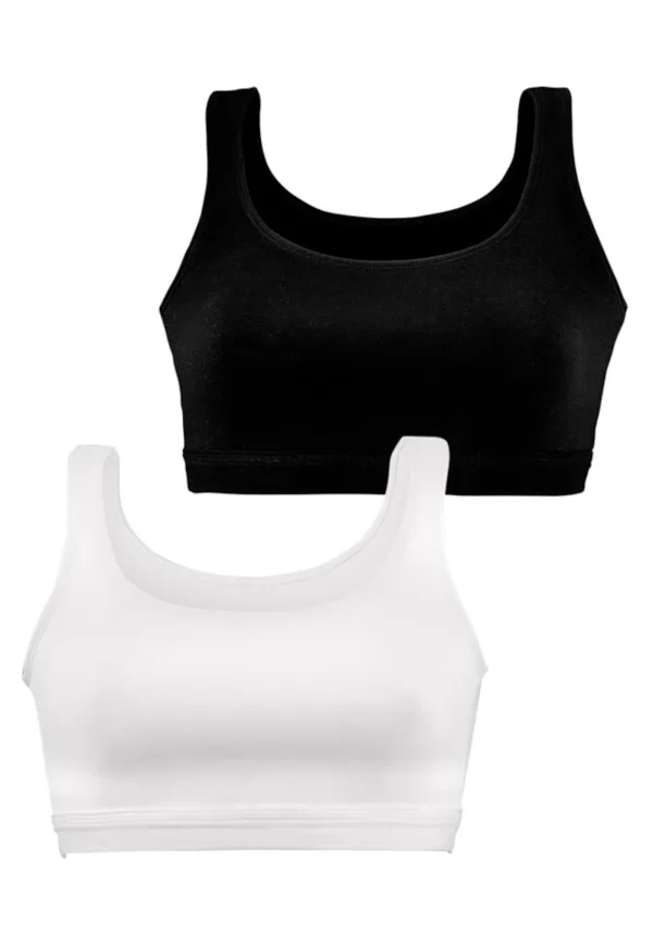 Cup soorten: Soft cup bh; Soort bandjes: Normale bandjes; Bh/bikini type: Bustier; Beugel: Zonder beugel; Materiaal: Jersey; Motief: Effen; Aantal: 2 Pack; Pasvorm: Regular; Taillehoogte: Mid waist