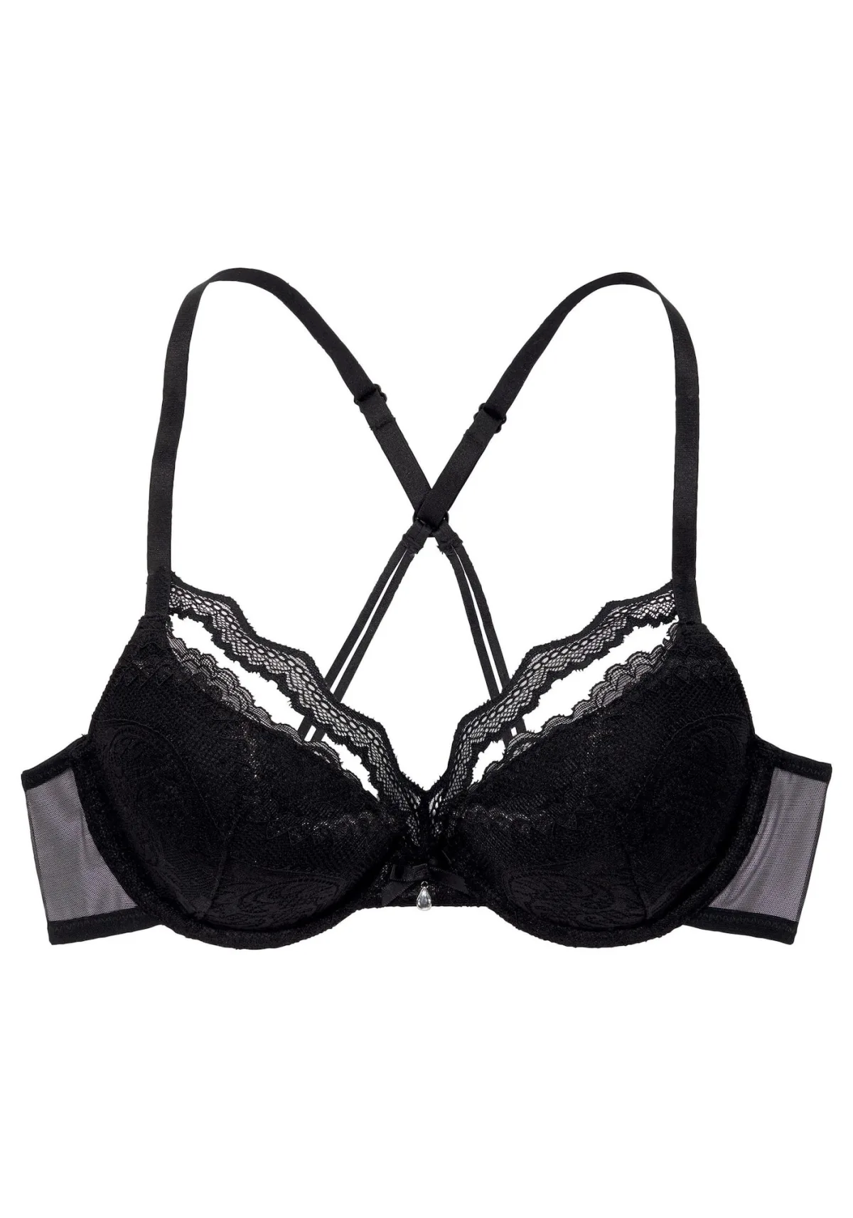 Cup soorten: Full cup bh; Soort bandjes: Sportrug/kruisende bandjes; Bh/bikini type: Push-up; Beugel: Met beugel; Motief: Effen; Details: Kant; Extra's: Verstelbare bandjes