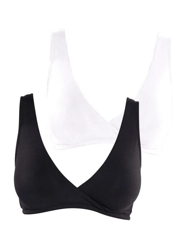 Cup soorten: Full cup bh; Soort bandjes: Normale bandjes; Bh/bikini type: Triangel; Beugel: Zonder beugel; Materiaal: Jersey; Motief: Effen; Extra's: Voelt zacht aan; Borstvoedingsfunctie: Met borstvoedingsfunctie; Kleuren per verpakking: Meerdere kleuren per verpakking; Aantal: 2 Pack
