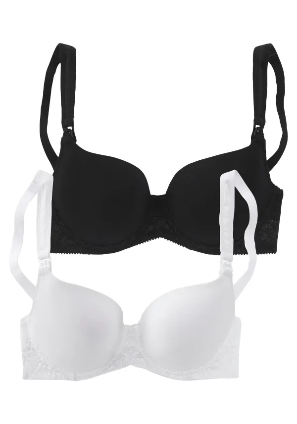 Cup soorten: Full cup bh; Soort bandjes: Normale bandjes; Bh/bikini type: T-shirt; Beugel: Met beugel; Materiaal: Katoen; Motief: Effen; Details: Kant; Extra's: Verstelbare bandjes, Op staal naden, Voelt zacht aan; Borstvoedingsfunctie: Met borstvoedingsfunctie; Aantal: 2 Pack