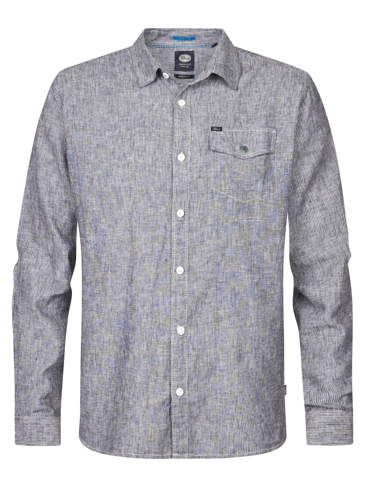 Petrol Industries – Heren Overhemd van linnenmix Seabright – Blauw