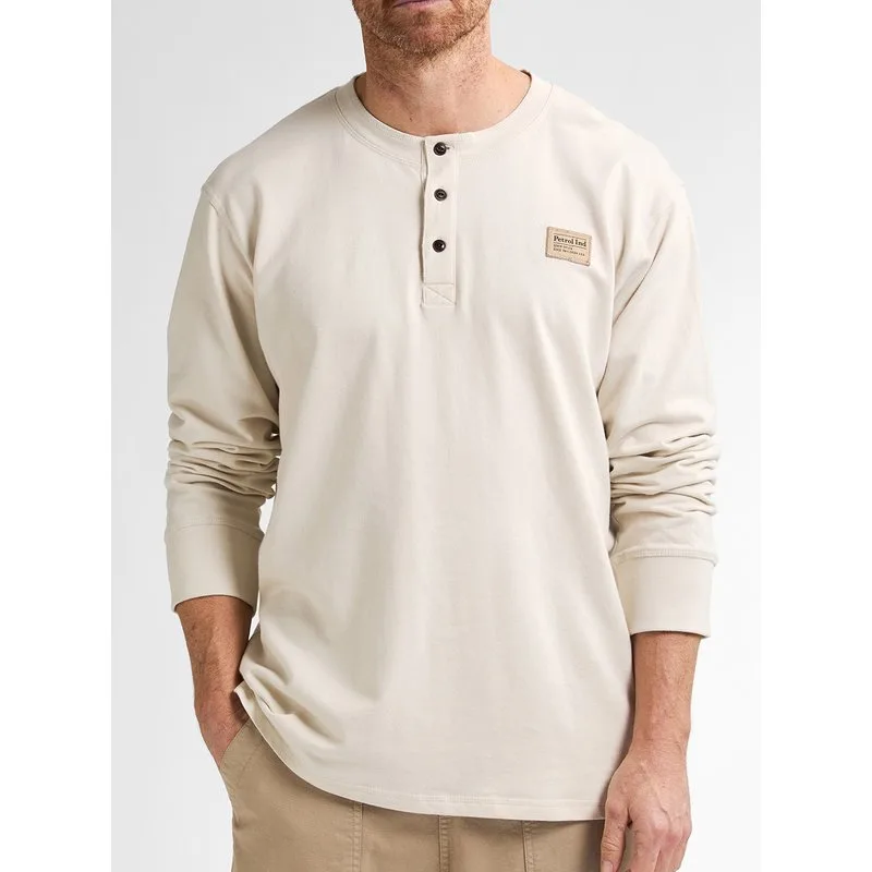 Lange mouw T-shirt van Petrol Industries. Deze longsleeve voor mannen heeft een granded hals en kleine logo patch op de borst. Regular fit 100% Katoen