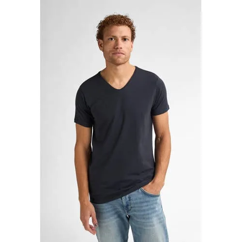 Petrol Industries T-Shirt Basic V-Neck Bodyfit Two Pack Navy