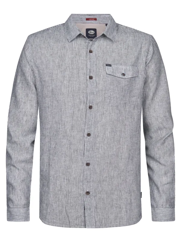 Petrol Industries - Heren Gestreept linnenmix overhemd Eclipse - Blauw...