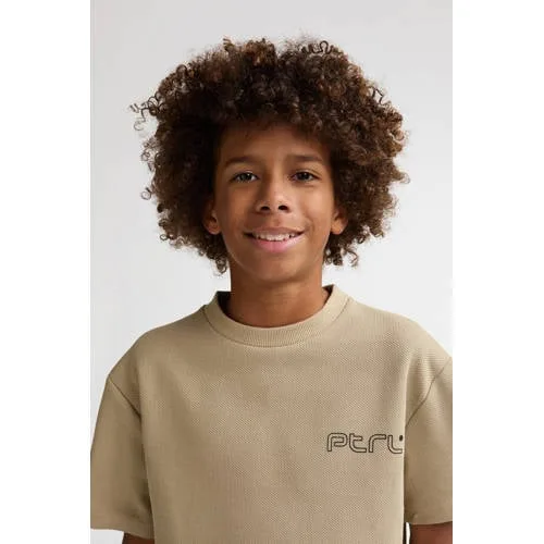 Dit zandkleurige Petrol Industries jongens T-shirt is een fijne basic voor elke dag met net dat beetje extra door de stoere backprint. De rustige kleur combineert makkelijk met jeans, jogpants of een korte broek en past goed bij de Daily collectie van Petrol Industries. Gemaakt van 100 procent katoen voelt het shirt comfortabel en soepel aan op de huid, ideaal voor school, sporten of chillen met vrienden.Details die het verschil maken Zachte katoenen kwaliteit die prettig aanvoelt en makkelijk draagt Korte mouwen en ronde hals voor een casual, tijdloze look Backprint en printopdruk geven het shirt een speels, stoer karakter Zandkleur die eenvoudig te combineren is met verschillende outfits Geen sluiting, zodat het snel en makkelijk aan en uit gaat Machinewasbaar en geschikt voor een regulier droogprogramma Geschikt voor schoolkinderen en tieners, passend binnen de Daily collectieEveryday shirt voor school en vrije tijdDit T-shirt is gemaakt voor drukke dagen vol beweging. Of het nu gaat om een schooldag, buitenspelen of een middag gamen, de rechte pasvorm en het soepele materiaal zorgen voor veel draaggemak. Door de neutrale zandkleur is het een handig basisstuk in de kast dat vaak uit de la wordt gepakt.Petrol Industries voor stoere kidsPetrol Industries staat bekend om comfortabele kleding met eigentijdse prints en kleuren. De kinderlijn sluit aan op het dagelijkse leven van jongens die graag vrij bewegen en er tegelijk verzorgd uit willen zien. Dit T-shirt past daar naadloos bij en vormt een betrouwbare basis voor alledaagse outfits.Een praktische favoriet voor elke dag, met een print die elke outfit net wat spannender maakt.