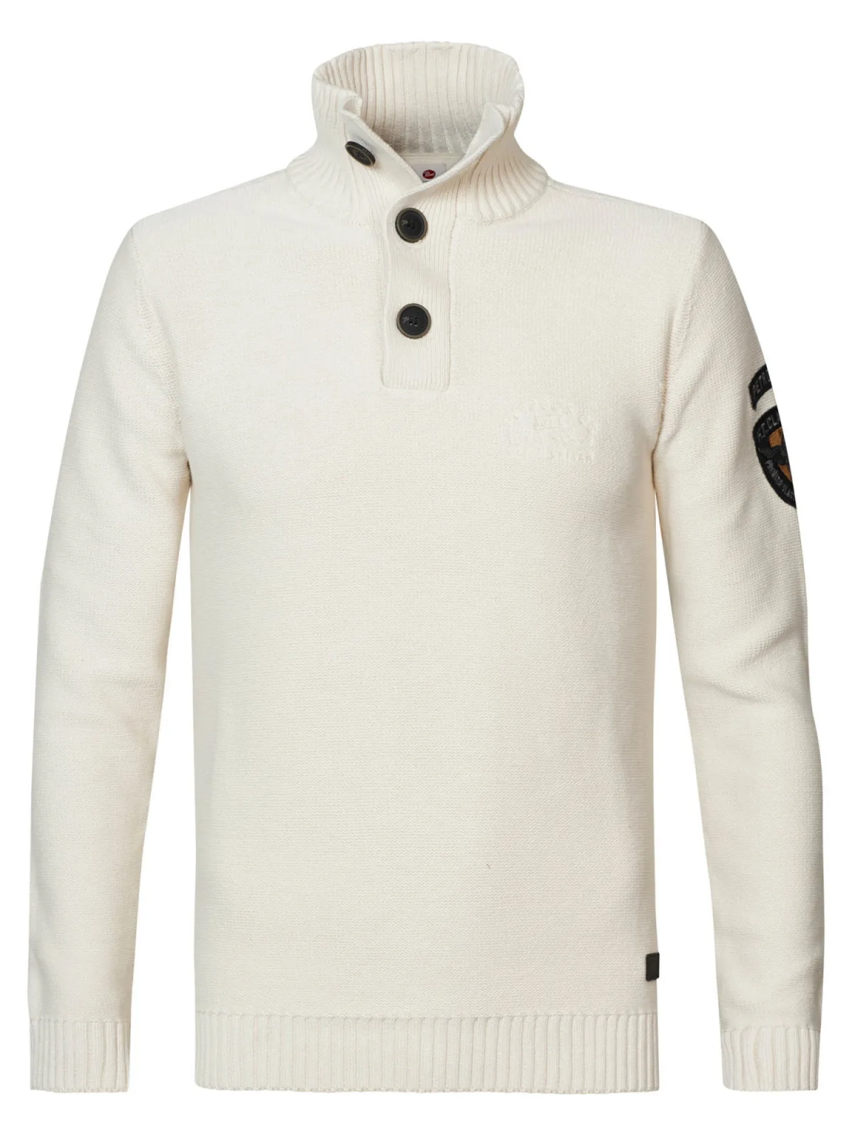 Effen gebreide trui met opstaand kraag en ribgebreide boorden van 100% katoen. Een must-have voor de garderobe.
