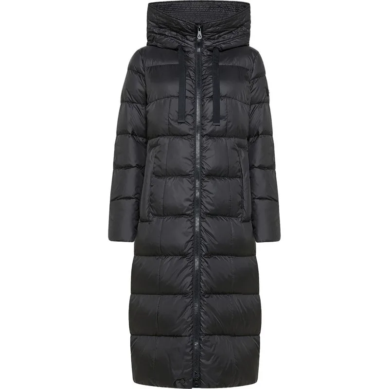 Lange horizontaal gewatteerde jas van superlichte stof gemaakt van 100% gerecycled polyester. Zwart gecoate ritssluiting met dubbele schuiver over de hele lengte, steekzakken en opvallende kraterkraag met capuchon. Het model is een perfecte synthese van esthetiek en functionaliteit om te dragen bij de meest informele gelegenheden. Zacht en compact, waterafstotend met een milieuvriendelijke PFC-vrije behandeling.