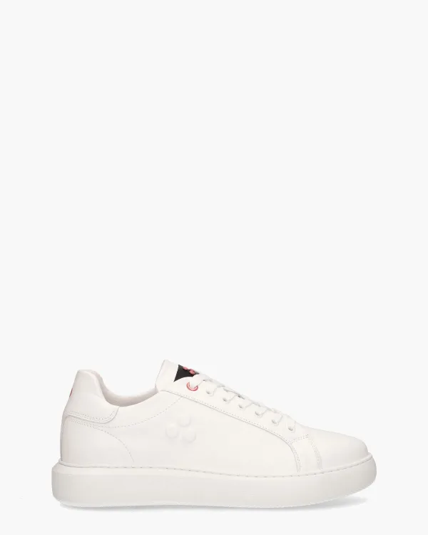 Sneakers voor heren Helica 02 uit de collectie van het Italiaanse label Peuterey. Dit minimalistische model heeft een bovenwerk van wit kalfsleer. De binnenkant is ook in leer uitgevoerd en voorzien van een uitneembaar voetbed. Op de tong, de hiel en aan de zijkant is het merklogo zichtbaar. De witte 3 cm vulcanised zool is van rubber