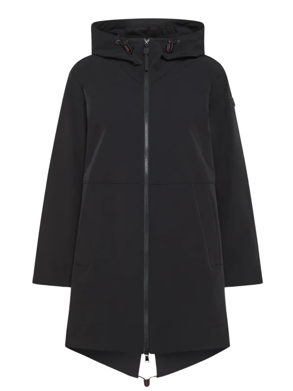 Stijlvolle dames softshell parka van Peuterey met capuchon, 2-weg ritssluiting en zijzakken - een chique allrounder voor alle buitenactiviteiten.