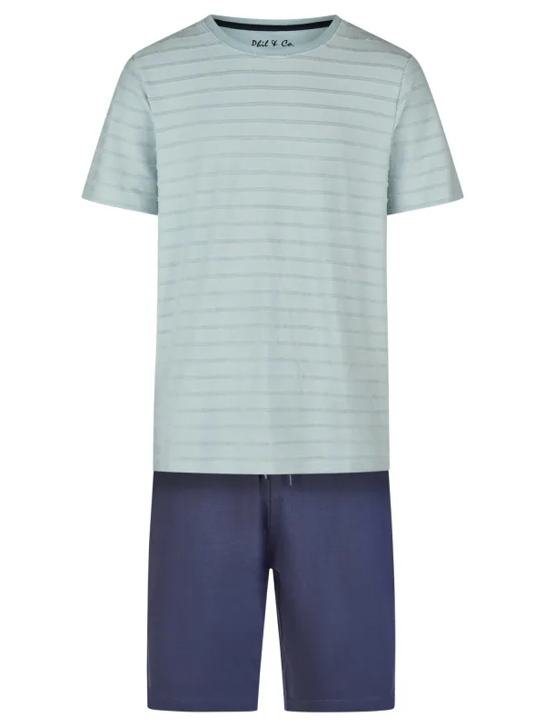 Phil & Co. Berlin Pyjama kort ‘ Classic ‘ blauw / lichtgroen Prijzen