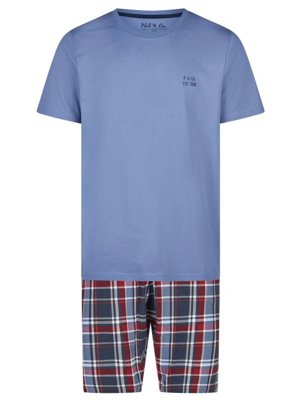 Phil & Co. Berlin Pyjama kort ‘ Classics ‘ blauw / donkerblauw / rood Prijzen