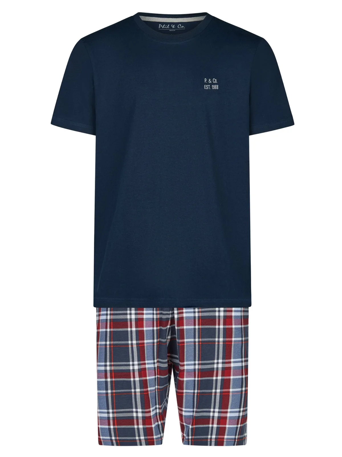 Specificaties: Phil & Co. Berlin Pyjama kort ‘ Classics ‘ donkerblauw / grijs / rood