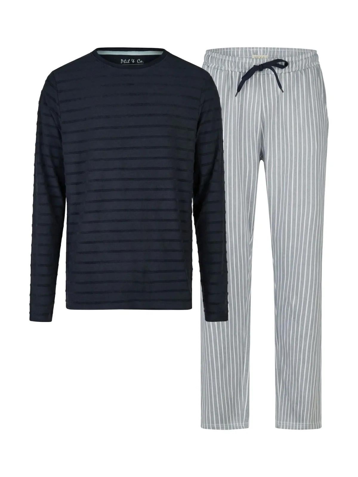 - Bij to-be-dressed.nl kun je Phil & Co Heren lange pyjama set donkerblauw/grijs gestreept kopen voor slechts €33,95 , dat is 25% goedkoper dan bij ABOUT YOU (€45,54).