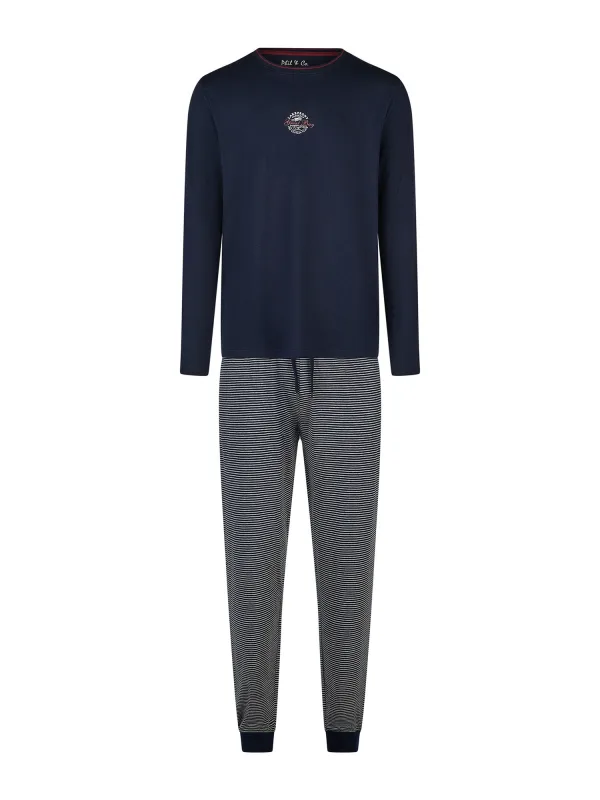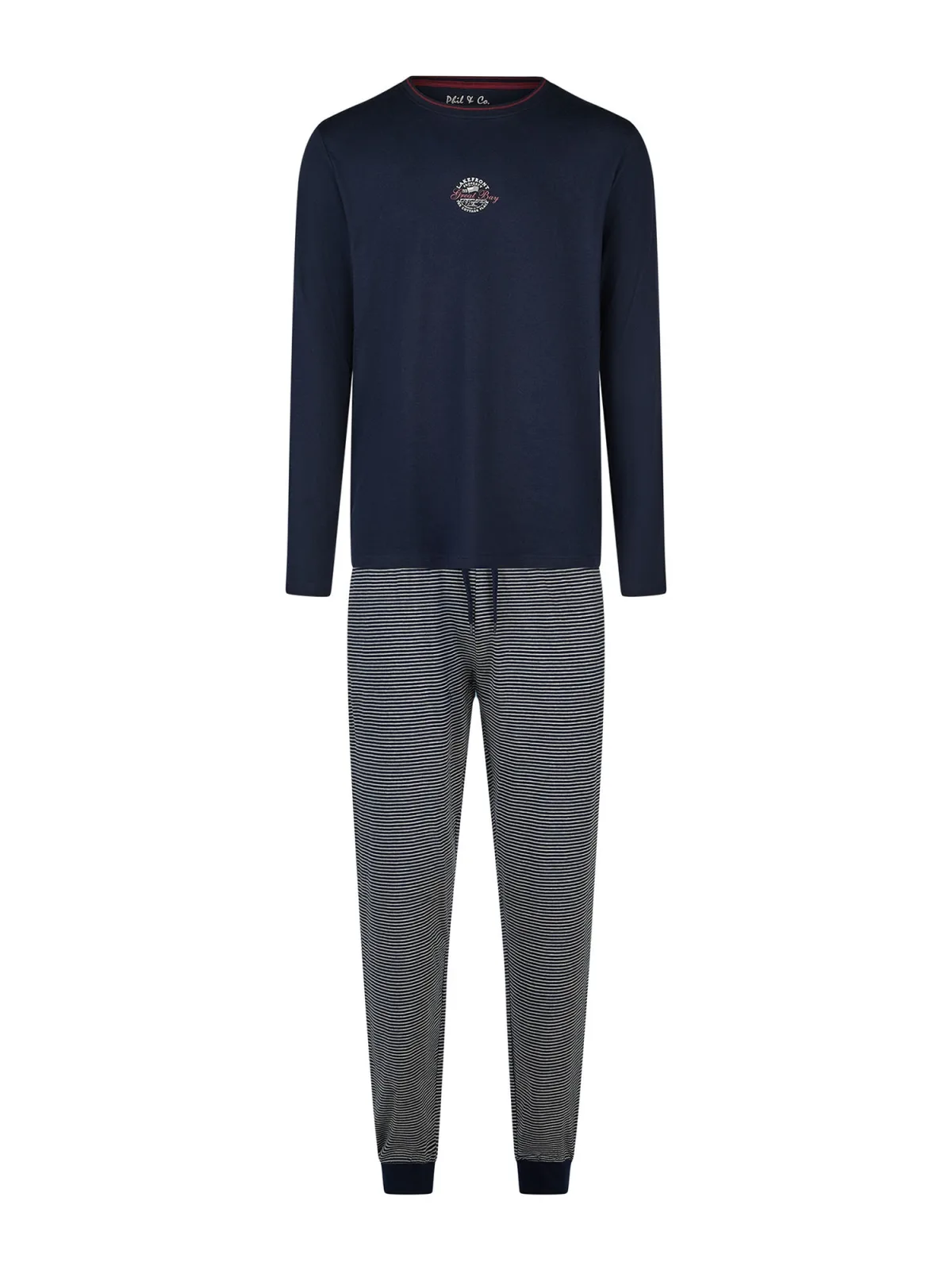 Phil & Co. Berlin Pyjama lang ‘ Great Bay ‘ donkerblauw / grijs