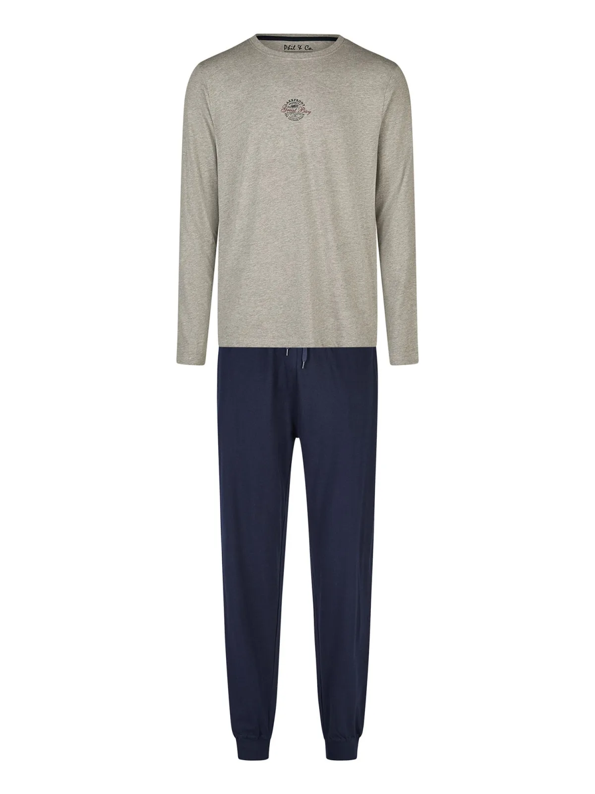 Phil & Co. Berlin Pyjama lang ‘ Great Bay ‘ donkerblauw / grijs Prijzen