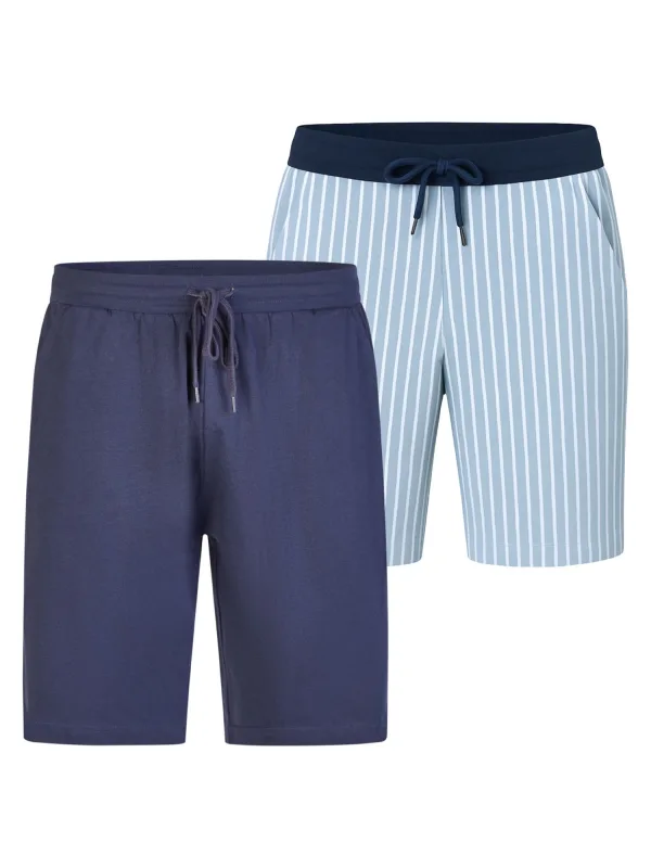 Phil & Co Heren korte pyjamabroek gestreept/effen blauw 2-pack