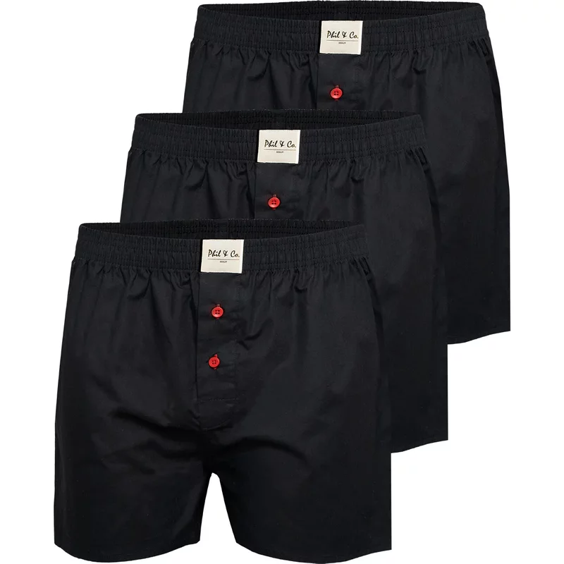 Phil & Co Wijde boxershorts heren geweven katoen effen 3-pack
