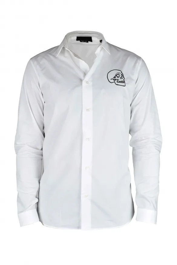 Gold Cut LS Skull Philipp Plein overhemd in wit.Schedel geborduurd op de linkerborst.100% katoen.Gemaakt in Italië.