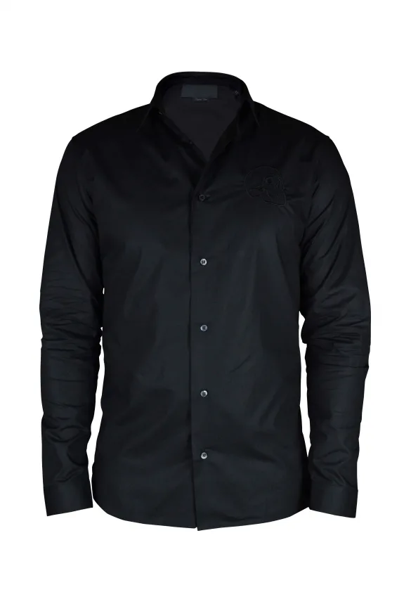Gold Cut LS Skull Philipp Plein overhemd in zwart.Schedel geborduurd op de linkerborst.100% katoen.Gemaakt in Italië.