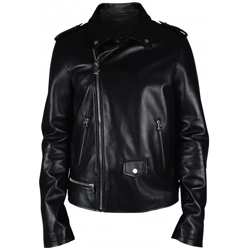 Philipp Plein zwart leren bikerjack met ritssluiting.Zilveren PLEIN®-logo op de achterkant.Zijzakken.100% leer.Gemaakt in Italië.