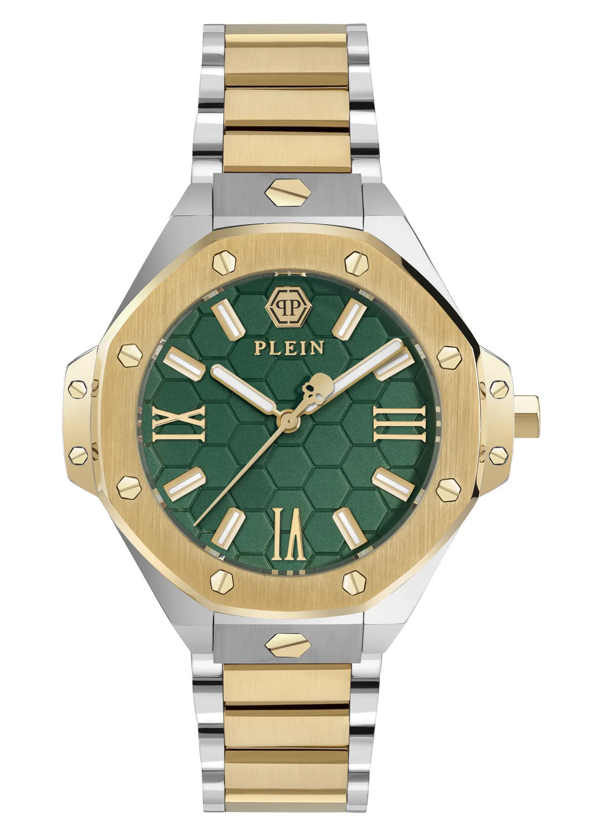 Deze Philipp Plein Plein Lady Royal Analoge Horloge voor Vrouwen is het perfecte tijdstuk om te dragen of als cadeau te geven. De multikleurige 39 mm ronde kast, gecombineerd met de comfortabele multikleurige roestvrijstalen horlogeband, zorgt ervoor dat je kunt genieten van dit schitterende horloge zonder enige concessies. Aangedreven door een hoogwaardig Quartz uurwerk en waterbestendig tot 5 bar, blijft je horloge tikken. Deze vlaggenschiplijn van het SS24 merk keert terug in een tijd-only en unieke versie met Romeinse cijfers, waarbij verfijning en empowerment worden gecombineerd. Dit analoge horloge heeft een functie: Luminiserende wijzers en luminiserende cijfers. Hoogwaardige roestvrijstalen band van 19 cm lengte en 20 mm breedte met een vouwsluiting. Kastdiameter: 39 mm, kastdikte: 10 mm, kastkleur: Multikleur en wijzerplaatkleur: Groen.