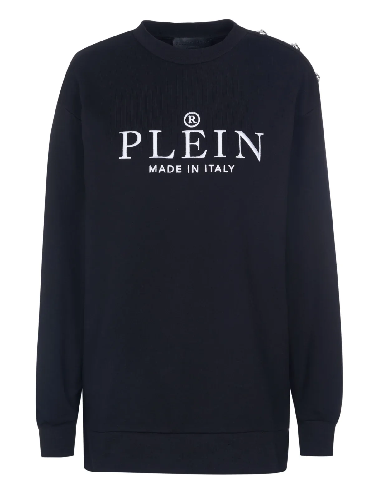 100% Cotton; Philipp Plein pullover; Model: SABC WJO0741 PJO002N; High quality manufactured ; Soft cotton ; Crew neck; Long sleeves ; Buttons on the left shoulder seam ; Philipp Plein logo details