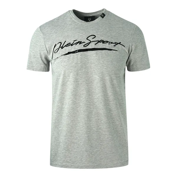 Philipp Plein Sport Signature Logo Grey T-Shirt. Philipp Plein Sport Grey T-Shirt. Stretch Fit 95% Cotton, 5% Elastane. Made In Italy. Plein Branded Badges. Style Code: TIPS108 94