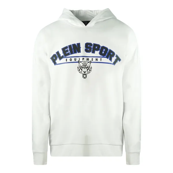 Philipp Plein Sport Equipment Logo Witte Hoodie. Philipp Plein Sport Witte Hoodie. 51% Katoen 49% Polyester. Grote Plein Branding Op De Voorkant. Plein Gebrandmerkte Badges. Stijlcode: FIPS219 01