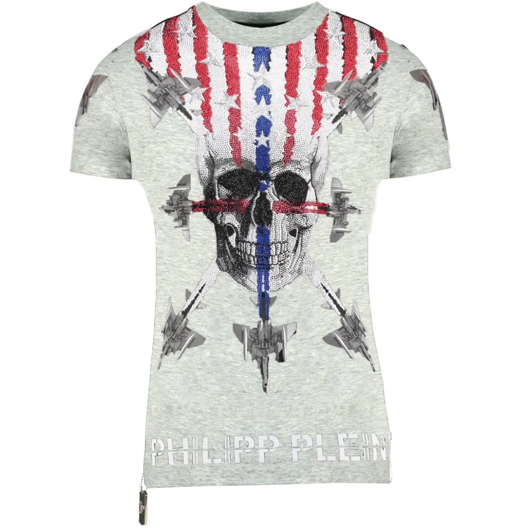 Philipp Plein Vliegtuigontwerp Grijs T-shirt Prijzen