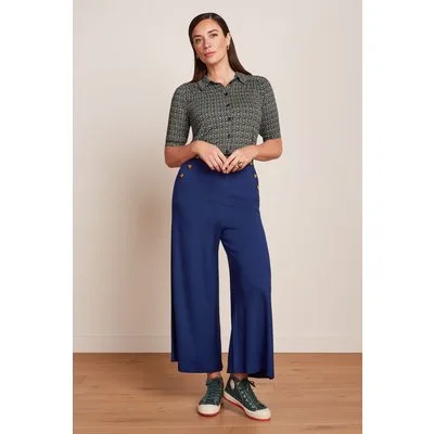 ''Statement trousers alert!'' Creëer de meest prachtige looks met deze Pia Milano culotte! Door de vrouwelijke hoge taille en wijde pijpen is ze DE perfecte klassieker die jarenlang mee kan. Ze is uitgevoerd in een soepele en luchtige, beacon blauwe Ecovero viscosemix (stretchy). 'Say yes' tegen Pia! * High waist model * Steekzakken voorzien van knopen! * Blinde rits met haaksluiting achterzijde * Rechte, wijde pijpen (culotte) * De afgebeelde top is niet verkrijgbaar in onze shop