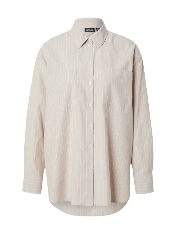 PIECES Blouse ‘Melia’ donkerbeige / wit