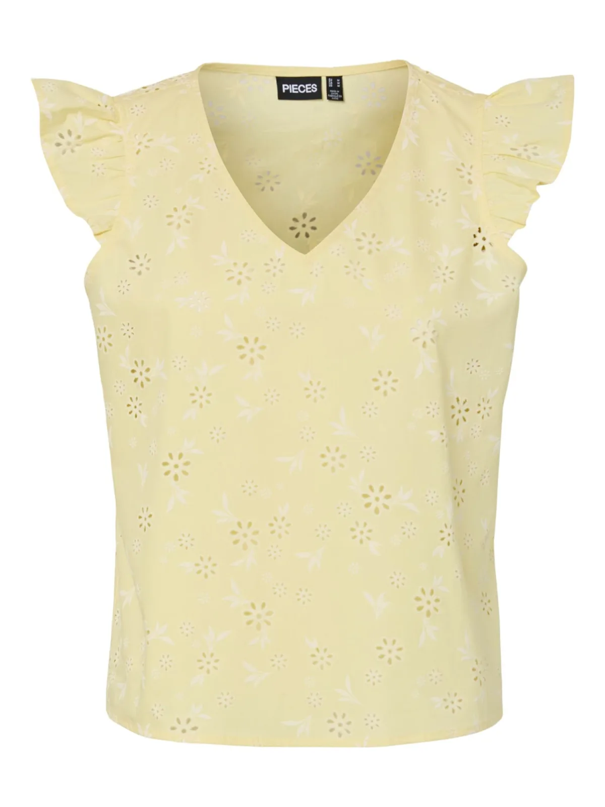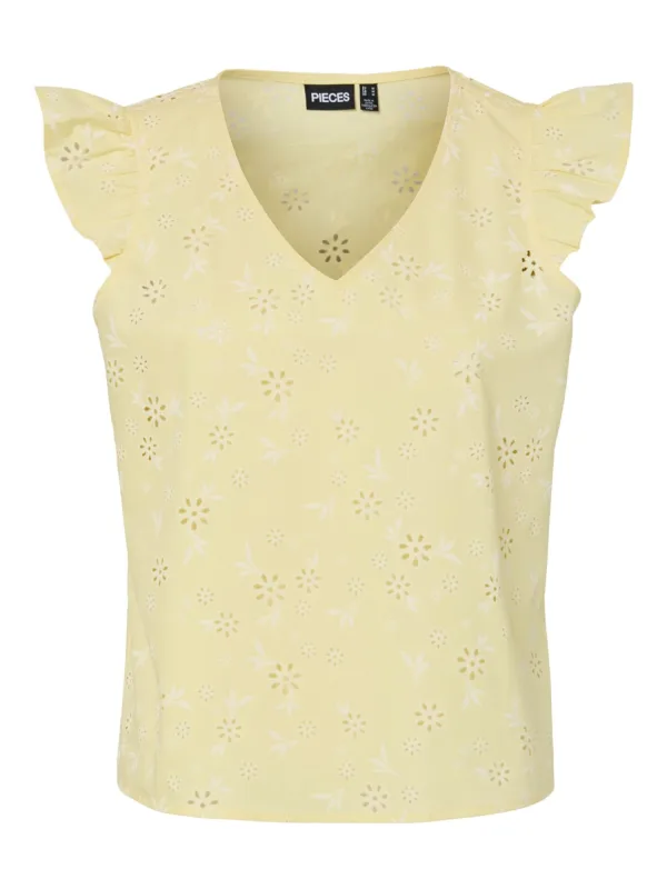 Specificaties: PIECES Blouse ‘PCBanna’ pasteelgeel / wit