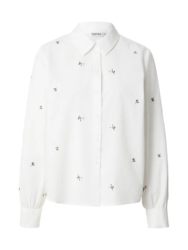 dames overhemdblouse van Pieces;Model 'Geneva';look: effen;Pasvorm: relaxed fit;kraagmodel: overhemdkraag;Applicatie: stitchingmotief;Sluiting: enkelrijige knoopsluiting;Mouwvorm: lange mouw;mouwboord: manchet;rompzoom: licht afgerond;Materiaal: puur katoen