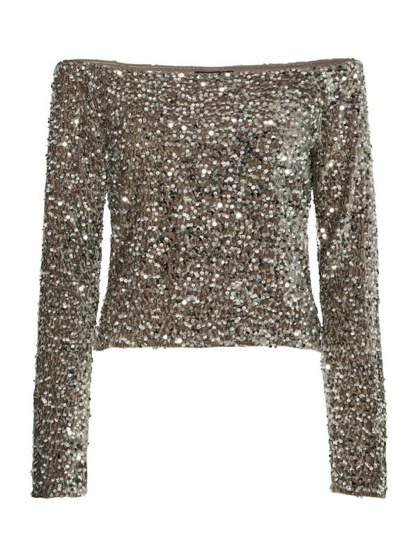 Blouse type: Blouseshirt; Design: Gevoerde zoom/rand, Strapless/off-shoulder; Materiaal: Gerecycled materiaal; Kraag: Zonder kraag; Details: Pailletten; Extra's: Glitterend, Applicaties; Pasvorm: Normale pasvorm; Armlengte: Lange mouw; Lengte: Normale lengte
