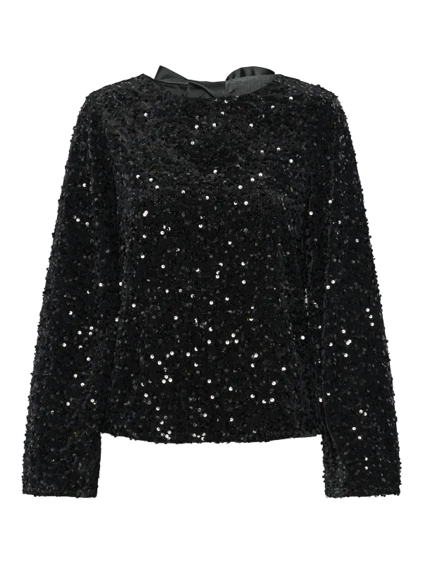 Blouse type: Blouseshirt; Design: Gevoerde zoom/rand, Om te knopen/binden, Uitgesneden rug; Materiaal: Gerecycled materiaal; Motief: Effen; Kraag: Zonder kraag; Details: Cut-outs, Pailletten; Extra's: Glanzend, Op staal naden, Met textuur; Pasvorm: Normale pasvorm; Armlengte: Lange mouw; Lengte: Normale lengte