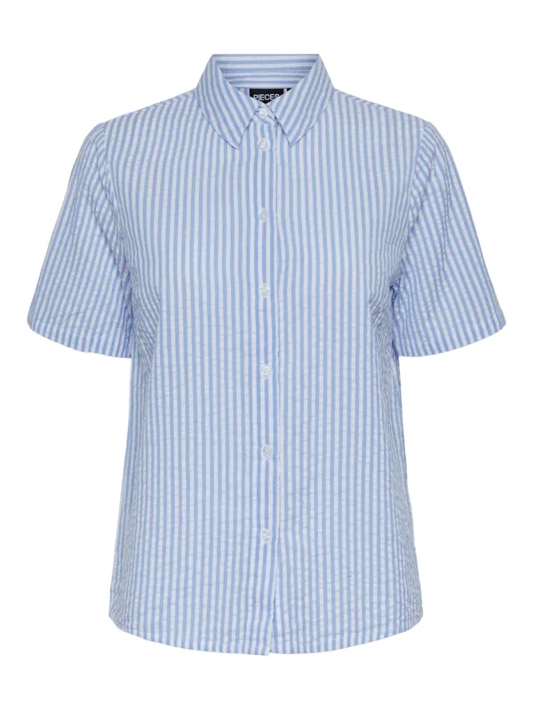 PIECES Blouse ‘PCSally’ lichtblauw / wit Prijzen