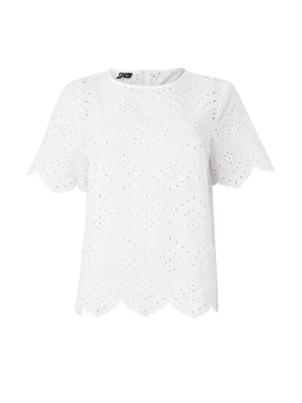 Blouse type: Blouseshirt; Design: Keyholesluiting, Geschulpte zoom; Type sluiting: Knoopsluiting; Materiaal: Katoen; Motief: Effen; Kraag: Zonder kraag; Details: Cut-outs, Borduursels, Mesh; Extra's: Licht transparant, Voelt zacht aan; Pasvorm: Normale pasvorm; Armlengte: Kwartmouw; Lengte: Normale lengte