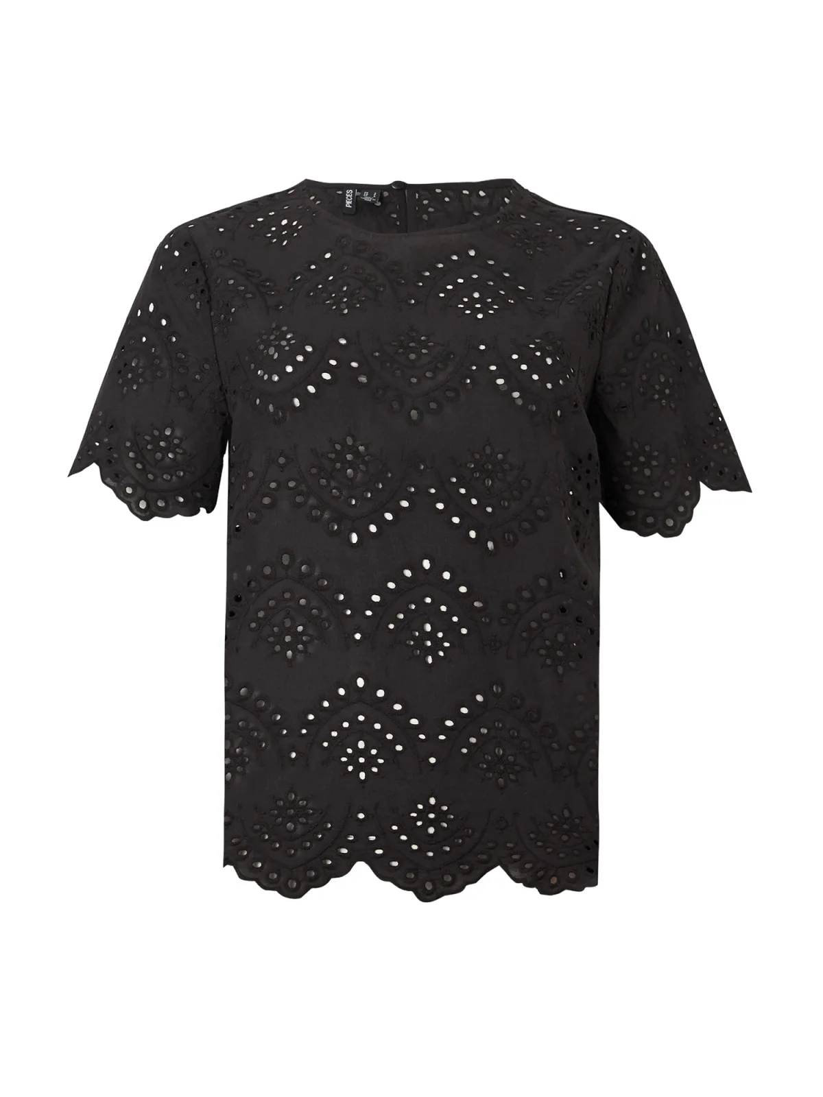 Blouse type: Blouseshirt; Design: Keyholesluiting, Geschulpte zoom; Type sluiting: Knoopsluiting; Materiaal: Katoen; Motief: Effen; Kraag: Zonder kraag; Details: Cut-outs, Borduursels, Mesh; Extra's: Op staal naden, Voelt zacht aan; Pasvorm: Normale pasvorm; Armlengte: Kwartmouw; Lengte: Normale lengte