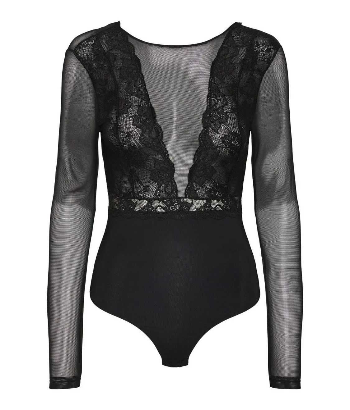 Pieces kanten body lange mouw zwart- Sicca Bodystocking