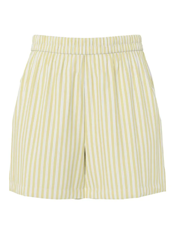 Design: Elastische taille/zoom; Materiaal: Katoen; Motief: Gestreept; Details: Gedrapeerd; Extra's: All-over patroon, Voelt zacht aan; Lengte: Kort/mini; Pasvorm: Loosefit; Taillehoogte: High waist