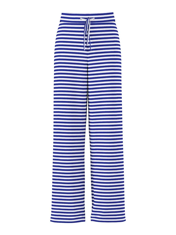 Design: Taille met trekkoord, Elastische taille/zoom; Materiaal: Jersey; Motief: Gestreept; Extra's: All-over patroon; Lengte: Lang/maxi; Pasvorm: Wide leg; Taillehoogte: High waist