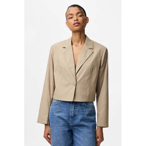 PIECES cropped blazer grijsbruin